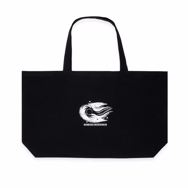 The Nordic Buddies Moomin Novels Large Tote Bag in black is a spacious and durable bag designed for both style and practicality. Made from 100% polyester, it is lightweight, sturdy, and easy to maintain. Its large size provides ample room for groceries, books, or everyday essentials, making it a versatile choice for daily use. The sleek black color paired with the Moomin novels-inspired design adds a unique and literary charm. Perfect for fans of the Moomins, this tote bag combines functionality with timeless storytelling style.