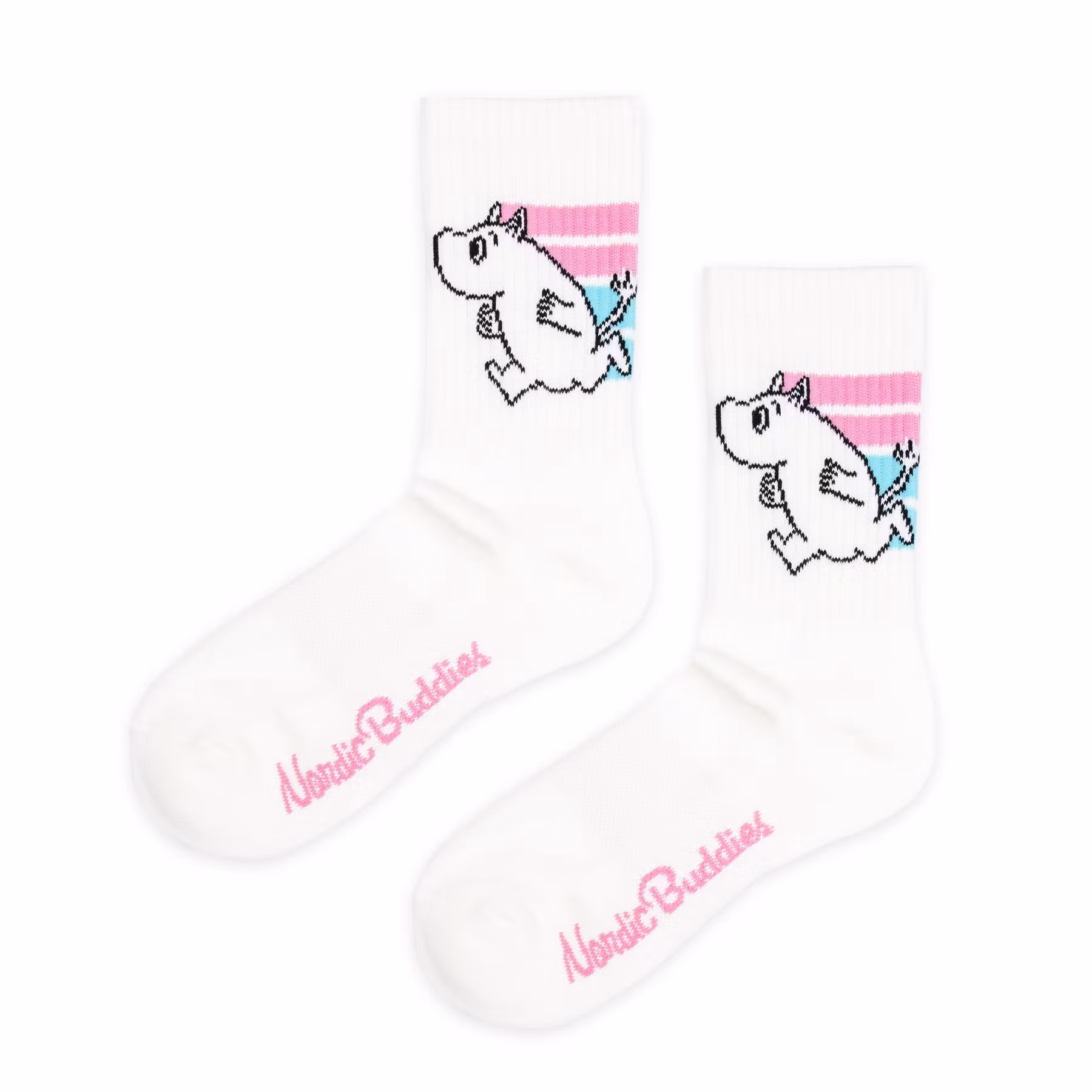 Stay comfortable and stylish with the Nordic Buddies Moomintroll Active Crew Women’s Socks – White/Pink. These sporty socks feature a cheerful Moomintroll design that adds a playful Scandinavian touch to your everyday wear. Crafted from soft, breathable materials, they keep your feet cool and supported whether you’re working out or on the go. The white and pink color combination gives them a fresh and feminine look that pairs easily with any outfit. Perfect for Moomin fans who enjoy a mix of comfort, quality, and fun design.
