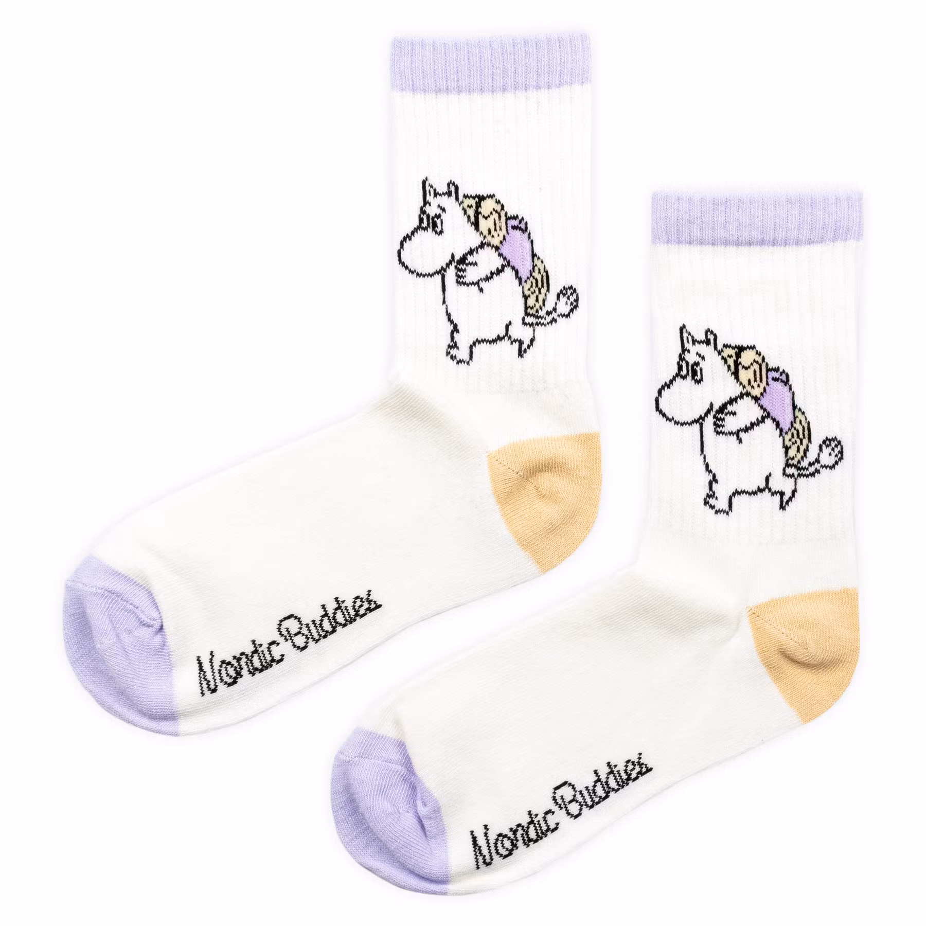 The Nordic Buddies Moomintroll Camping Women's Retro Socks bring a touch of Nordic nostalgia and fun to your everyday outfit. Featuring a charming Moomintroll camping design, these socks capture the cozy and adventurous spirit of the beloved Moomin stories. Made from soft, breathable materials, they offer all-day comfort and durability. The retro-inspired color palette of white, yellow, and purple adds a playful vintage vibe. Perfect as a gift or a treat for yourself, these socks are a must-have for any Moomin fan.