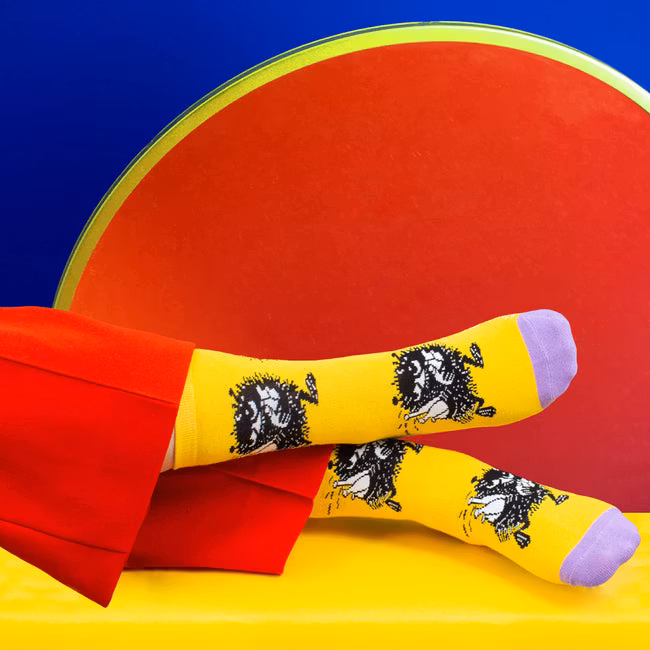 Add a playful twist to your outfit with the Nordic Buddies Stinky’s Getaway Women’s Socks in yellow and purple. Featuring the mischievous Stinky from the Moomin stories, these socks bring a touch of fun and personality to your day. Made from a soft, breathable cotton blend, they offer exceptional comfort and a snug fit for everyday wear. The vibrant yellow and purple color combination makes them stand out while keeping your feet cozy and fresh. Perfect for Moomin fans who love a splash of color and a bit of attitude in their style.