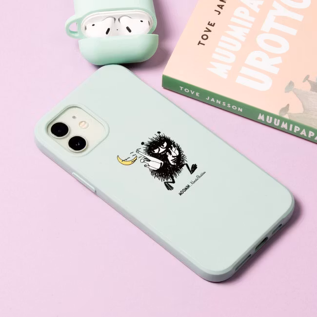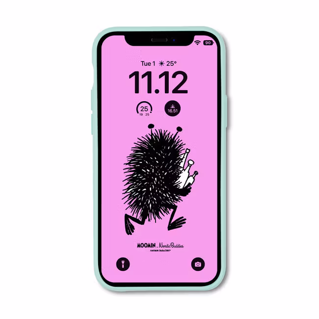 Durable Moomin phone case made of 100% compostable materials. The phone case is very pleasant in the hand and at the same time ensures a good grip on your phone. Phone case has been developed to be user-friendly which means that there is easy access to the phones connections and the phone's keyboard. The cover also supports the use of wireless charging stations. Responsible choices also affect the packaging of the product, we do not use any plastic at all, and also, the printing ink is environmentally friendly and we have chosen 100% recycled cardboard as the material. Therefore, the entire package with its contents is recyclable.