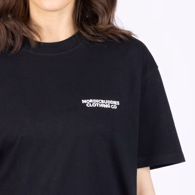 The NordicBuddies Pippi Longstocking T-Shirt features a bold illustration of the iconic Pippi in her classic, mischievous pose. The black background makes the vibrant artwork stand out, giving the tee a striking and modern look. Crafted from soft and durable cotton, it offers comfortable wear for everyday adventures. Its timeless fit pairs easily with any casual outfit. A perfect choice for fans of Pippi’s fearless and playful spirit, this shirt brings Nordic nostalgia with a stylish edge.