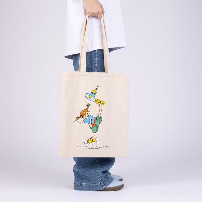 The NordicBuddies Pippi Tote Bag features a charming illustration of Pippi Longstocking printed on a natural white canvas for a clean, timeless look. Made from sturdy, high-quality material, it’s designed to handle daily errands and regular use with ease. The roomy interior provides plenty of space for books, groceries, or everyday essentials. Comfortable shoulder straps make it practical for both casual outings and busy days. A perfect blend of function and Nordic nostalgia, this tote adds playful charm to any outfit.