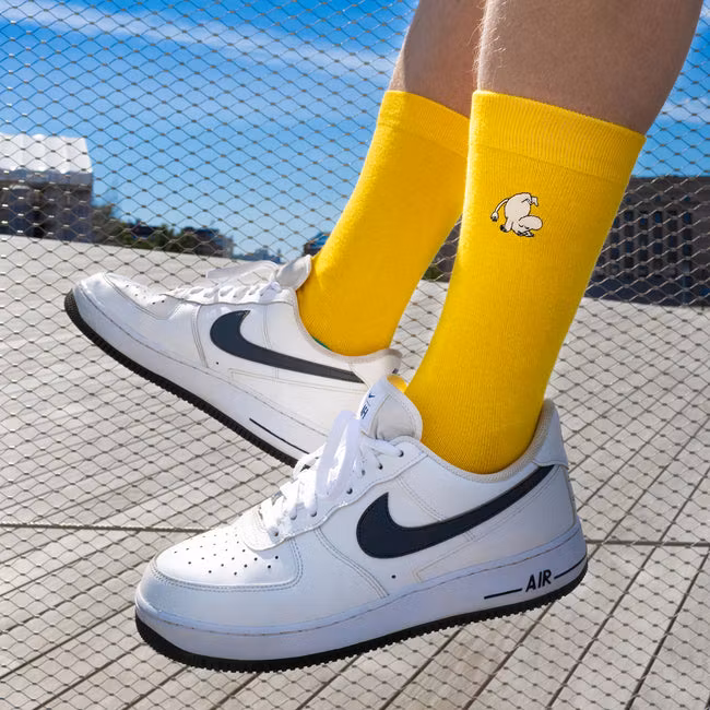Die Nordic Buddies Mumintroll-Stickerei-Herrensocken bieten eine stilvolle Mischung aus Komfort und Charakter. Mit einer detailreichen Mumin-Stickerei verkörpern sie den subtilen Charme der beliebten Mumin-Geschichten. Die Farbkombination aus Gelb, Petrol und Braun verleiht ihnen einen einzigartigen Retro-Touch. Der weiche und strapazierfähige Materialmix sorgt den ganzen Tag über für atmungsaktiven Tragekomfort. Ein Must-have für Mumin-Fans, die verspielte Eleganz in ihrer Garderobe schätzen.