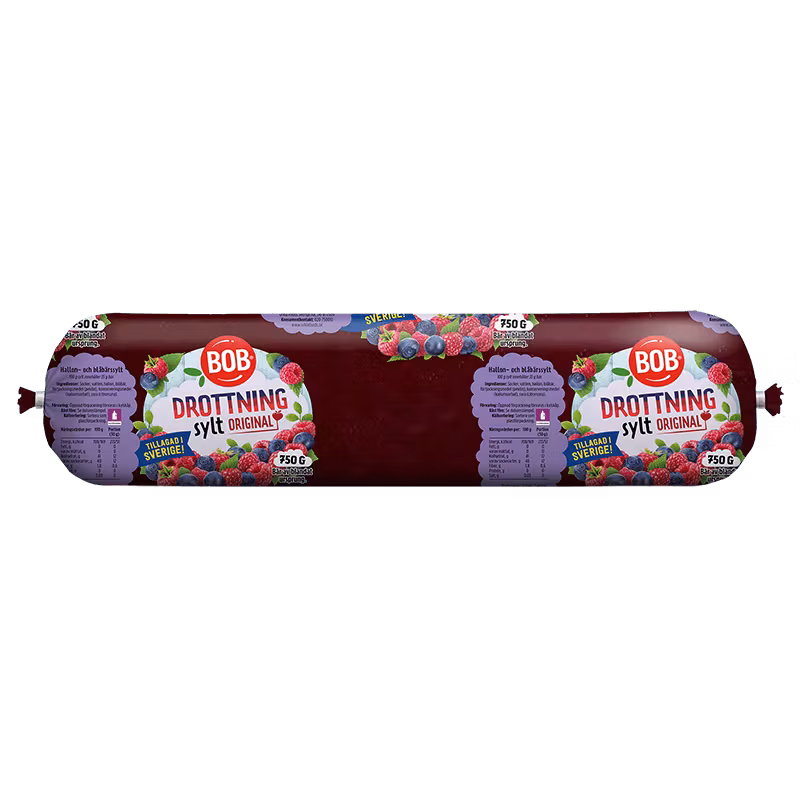 BOB Queen's Marmelade in klimafreundlicher Nachfüllpackung. Schwedens beliebteste Marmelade wird seit den 1940er Jahren in unserer Fabrik in Tollarp in Skåne gekocht und verpackt. Der Geschmack sonnengereifter Beeren und Früchte war noch nie besser!