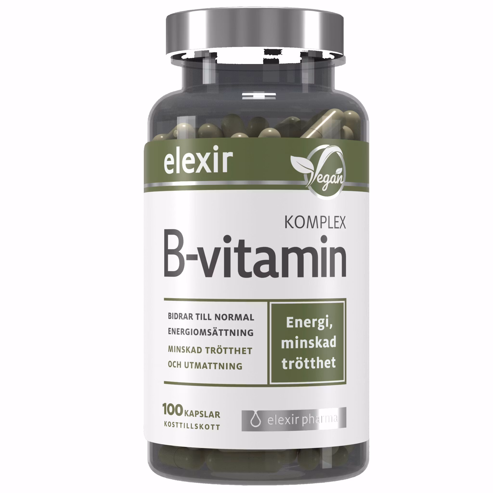 B-Vitamine sind wichtig für z. B. Haare, Haut, Nägel und bei Müdigkeit. Elixir B-Vitamin-Komplex liefert Ihnen alle wichtigen B-Vitamine. Stress und körperliche Aktivität können zu einem erhöhten Bedarf an B-Vitaminen führen, und auch wer sich einseitig ernährt, kann von zusätzlichen B-Vitaminen profitieren, um eine ausreichende Aufnahme sicherzustellen.