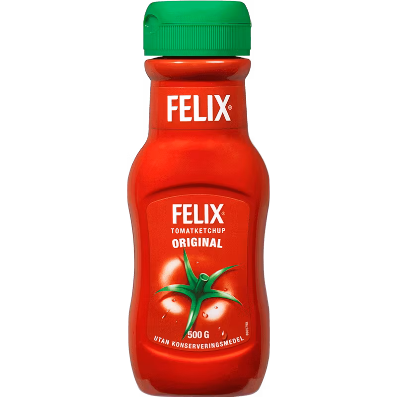 Felix Ketchup 500 g – unser Originalrezept mit ausgewogener Süße aus sonnengereiften Tomaten. Seit 1956 ein täglicher Favorit auf allen schwedischen Küchentischen. Felix Tomatenketchup wird in Blekinge aus sorgfältig ausgewählten, sonnengereiften Tomaten hergestellt und enthält keine Konservierungsstoffe.