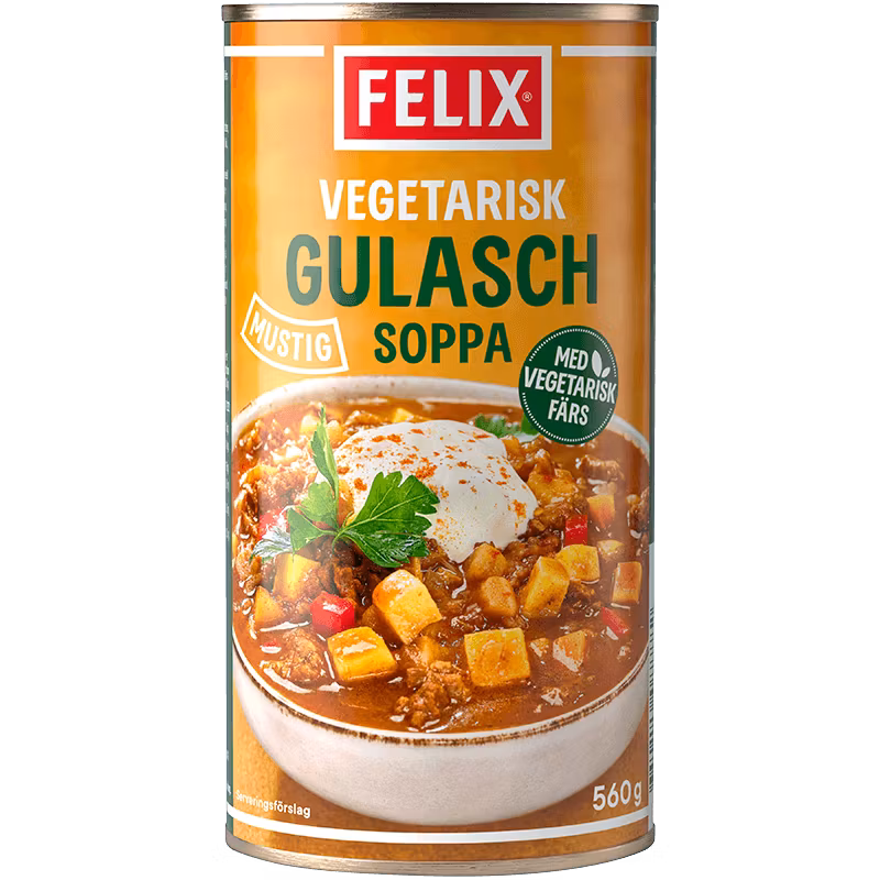 Felix Vegetarische Gulaschsuppe ist genauso würzig, herzhaft und lecker wie das Original, nur mit vegetarischem Hackfleisch. Eine leckere Gulaschsuppe ohne Fleisch, die nicht nur gut schmeckt, sondern auch gut tut! Einfach aufwärmen und im Handumdrehen fertig. Felix Vegetarische Gulaschsuppe eignet sich perfekt als Mittagessen im Büro oder als schnelles Abendessen, am besten mit etwas Petersilie als Topping und einem guten Brot. Eine leckere Mahlzeit!