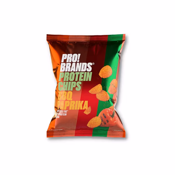 Proteinangereicherte Kartoffelchips mit dem Geschmack von BBQ/Paprika. Enthält 40 % weniger Fett als herkömmliche Kartoffelchips und hat einen hohen Ballaststoffanteil.