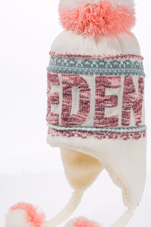 Die Robin Ruth Bon Bon Plus Wintermütze – Schweden in Weiß und Pink ist ein fröhliches und kuscheliges Accessoire für kaltes Wetter, das skandinavisches Flair mit praktischer Wärme perfekt verbindet. Sie besteht aus weißem Strick, verziert mit dem rosa-lila „SWEDEN“-Schriftzug und passenden Quastenakzenten an den Ohrenklappen sowie einem großen Bommel obendrauf. Die Innenseite ist teilweise mit weichem Teddyfleece gefüttert und sorgt so für zusätzliche Wärme und Komfort. Die handgefertigte Einheitsgröße aus Acrylstrick ist ideal für den Winter und bietet dehnbare Passform. Diese Mütze ist ein lustiges und stilvolles Souvenir oder Geschenk und bringt Wärme und einen Hauch nordischen Flairs in kalte Tage.