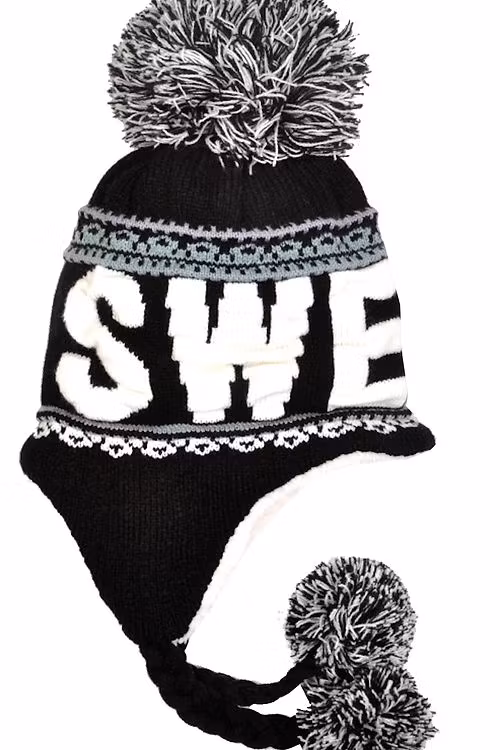 Die Robin Ruth Bon Bon Wintermütze – Schweden in Schwarz und Weiß ist ein elegantes und kuscheliges Winter-Basic mit nordischem Flair. Sie besteht aus weichem Acrylstrick in Schwarz und ist mit dem leuchtend weißen „SWEDEN“-Schriftzug auf der Vorderseite verziert. Die Mütze ist mit einem passenden Bommel verziert und hat geflochtene Quasten an den Ohrenklappen für zusätzlichen Charme und Wärme. Innen sorgt ein flauschiges Teddyfleece-Futter für weichen Tragekomfort und zuverlässige Isolierung an kühlen Tagen. Die Einheitsgröße vereint praktische Wärme mit skandinavischem Flair – perfekt als stilvolles Geschenk oder Alltags-Accessoire für kalte Tage.