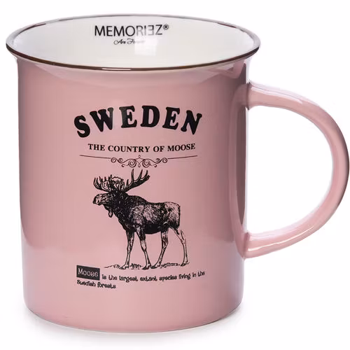 Feiern Sie Schwedens wilden Charme mit der großen Robin Ruth Moose Story Tasse in zartem Rosa mit den Maßen 8,5 × 9,3 cm. Diese Tasse aus hochwertiger Keramik zeigt eine skurrile Elchillustration, umgeben von schwedischen Volksmotiven, die ihr eine elegante, verspielte Note verleihen. Der sanfte rosa Hintergrund bringt das filigrane Kunstwerk zur Geltung und macht die Tasse auch bei Nichtgebrauch zu einem wunderschönen Ausstellungsstück. Dank ihrer robusten Konstruktion und dem ergonomischen Henkel ist sie ideal für den Genuss Ihres Lieblingskaffees, -tees oder Ihrer heißen Schokolade. Das durchdachte Design macht sie zu einem entzückenden Souvenir oder bedeutungsvollen Geschenk für Liebhaber nordischen Designs und der Natur.