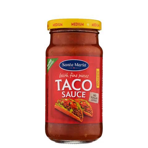 Taco Sauce ist eine leckere mexikanische Sauce mit Tomaten und Chili. Die Sauce ist in drei Varianten erhältlich: scharf, mittel und mild.