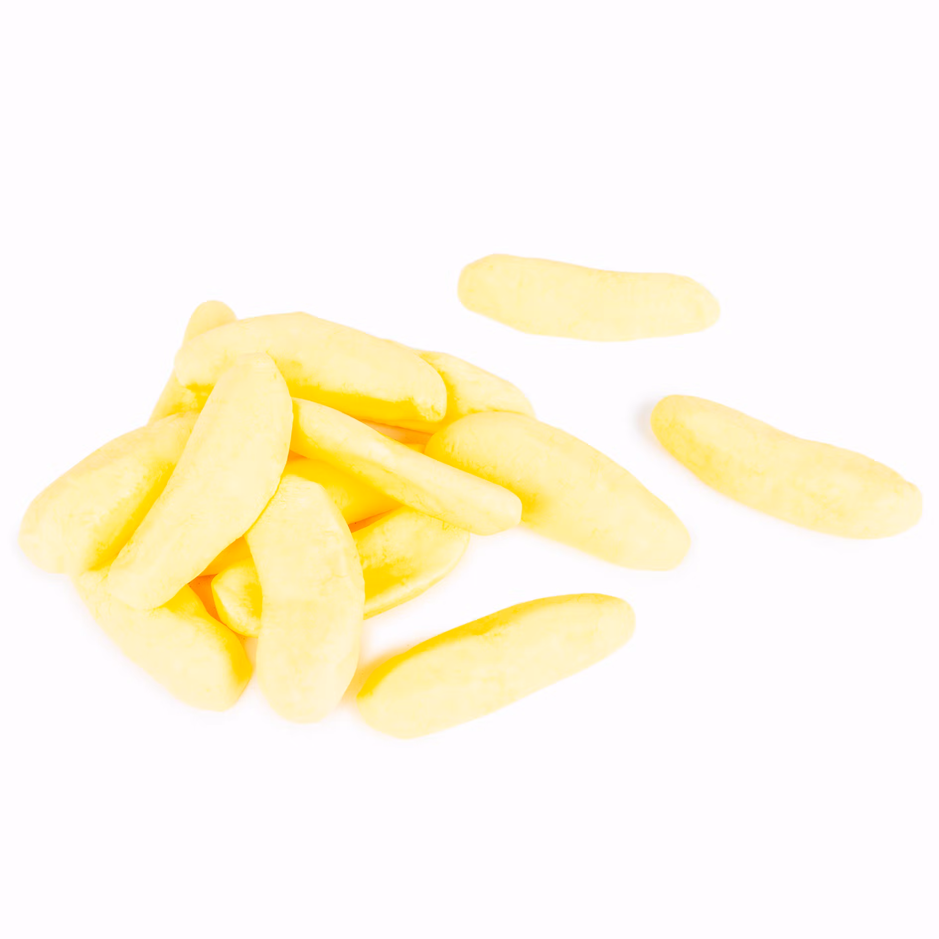 Schaumbananen sind weiche, bananenförmige Bonbons mit süßem, fruchtigem Geschmack und leichter, luftiger Textur. Ein lustiger und klassischer Leckerbissen, perfekt für alle, die einen weichen Biss und einen süßen Kick lieben.