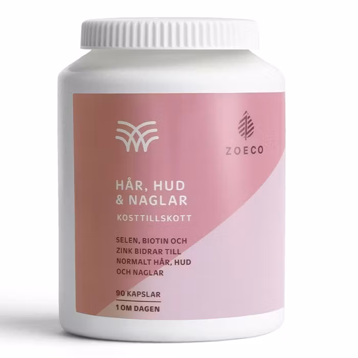 Zoeco Hair, Skin & Nails ist ein Nahrungsergänzungsmittel mit Selen, Biotin und Zink. Biotin trägt zur Erhaltung normaler Haare und Haut bei. Zink und Selen tragen zur Erhaltung normaler Nägel bei.