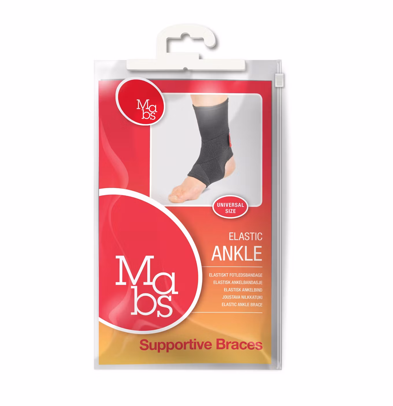 Die elastische Sprunggelenkbandage von Mab bietet leichte Kompression, Stütze und Entlastung für das Sprunggelenk.