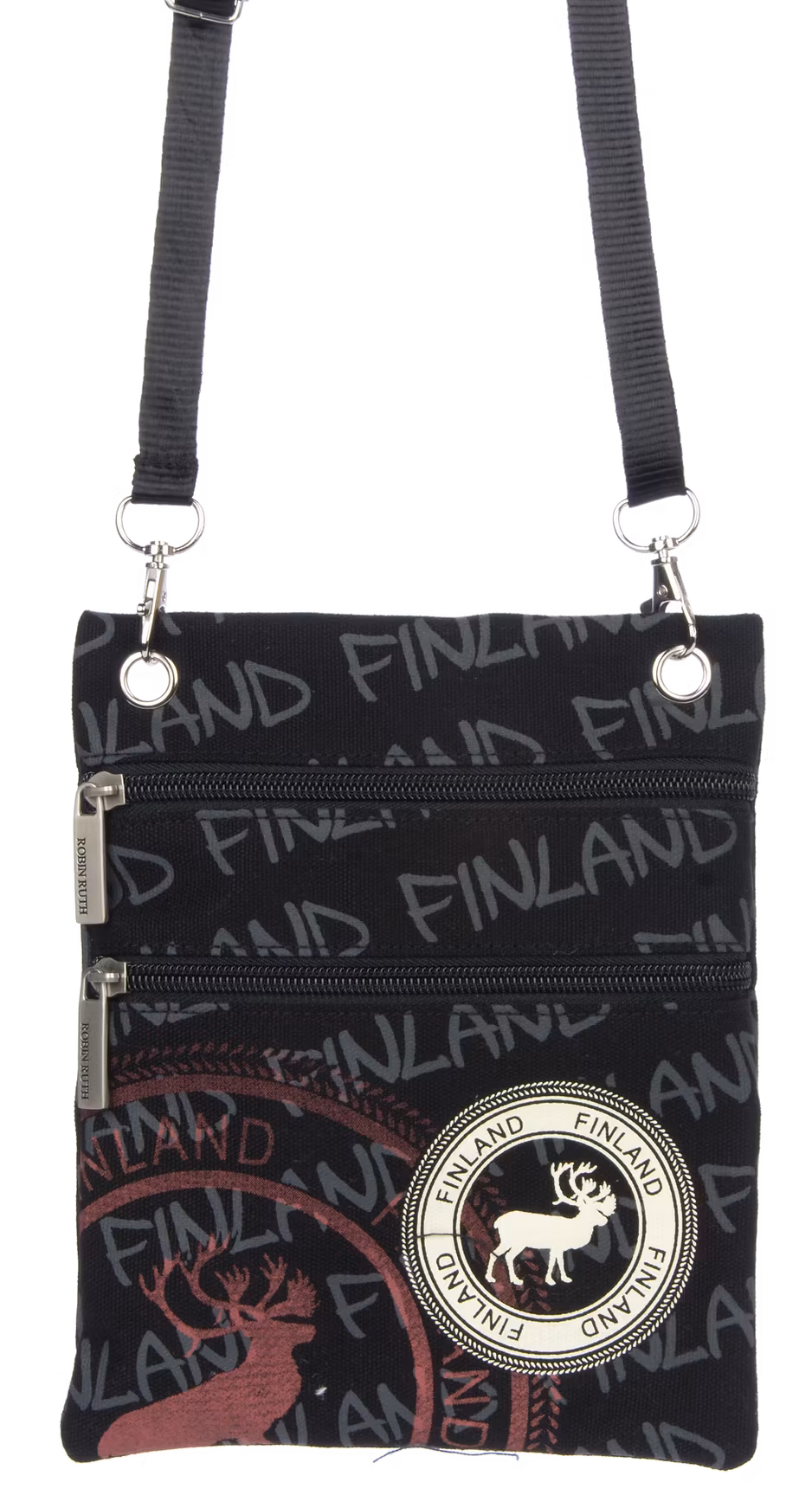 Die Robin Ruth Reisepasstasche Finland Graffiti Black ist ein auffälliges und praktisches Reiseaccessoire mit modernem, urbanem Touch. Der auffällige schwarze Graffiti-Print verbindet zeitgenössischen Stil mit finnischem Flair. Leicht und kompakt, eignet sich diese Umhängetasche perfekt, um Reisepass, Geldbörse, Handy und andere wichtige Kleinigkeiten sicher und griffbereit aufzubewahren. Hergestellt aus strapazierfähigen Materialien und mit einem verstellbaren Riemen bietet sie Komfort und Langlebigkeit auf Reisen oder im Alltag. Mit ihrem einzigartigen Design ist diese Reisepasstasche im Finnland-Stil ein ideales Souvenir oder stilvolles Geschenk.