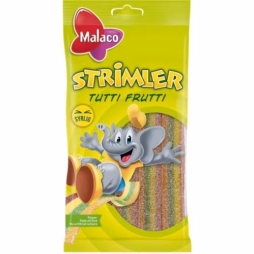 Diese weichen und zähen Süßigkeiten sind ideal, um sie alleine zu genießen oder mit Freunden und Familie zu teilen. Mit seinen leuchtenden Farben und aufregenden Aromen ist Malaco Strimler Tutti Frutti der perfekte Leckerbissen für jeden Anlass.