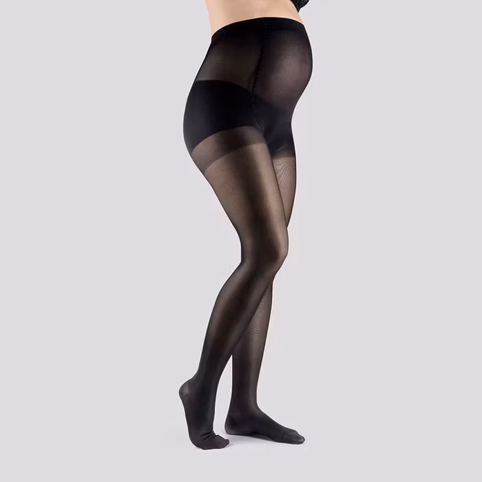 Pantis premamá Mabs de nailon suave y cómodo en forma de pantis con compresión. La media está tejida en un material cómodo y duradero con certificación OEKO-tex y de clase de compresión 1 (15-21 mmHg), 140 deniers. Ahora con un ajuste mejorado y más cómodo y un tejido suave para un aspecto elegante y un acabado suave.