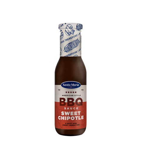 Salsa BBQ Sweet Chipotle con influencia americana. Es una salsa picante con el sabor y el toque ahumado de los chiles chipotle. Perfecta para carnes, pollo y salchichas. Se puede pincelar durante la parrilla y servir como guarnición.