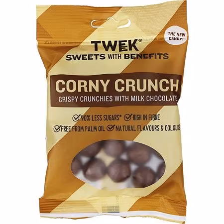 Tweek Corn Crunchers son bolitas de maíz crujientes cubiertas de suave chocolate con leche. Las bolitas de maíz contienen solo colorantes y sabores naturales, no tienen azúcar añadido y están completamente libres de aceite de palma. ¡Una opción perfecta para cuando te gusta lo dulce y quieres un capricho más saludable!
