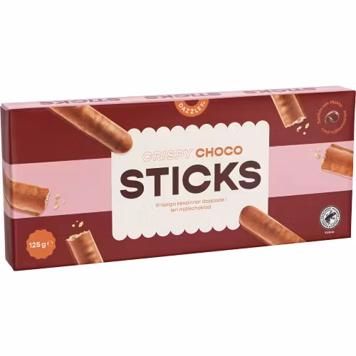 Maitosuklaassa kastetut keksitikut. 125 grammaa.