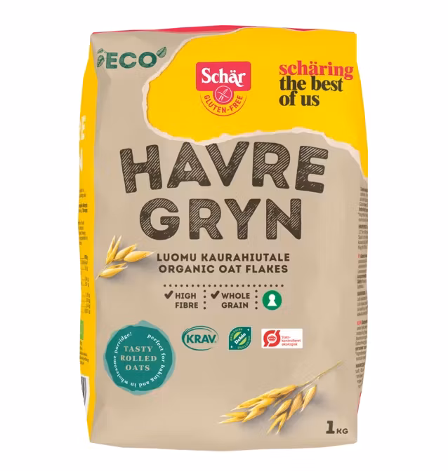 Flocons d'avoine biologiques sans gluten, préparés à la vapeur et pressés. Ingrédient biologique KRAV. Certification : Kiwa.