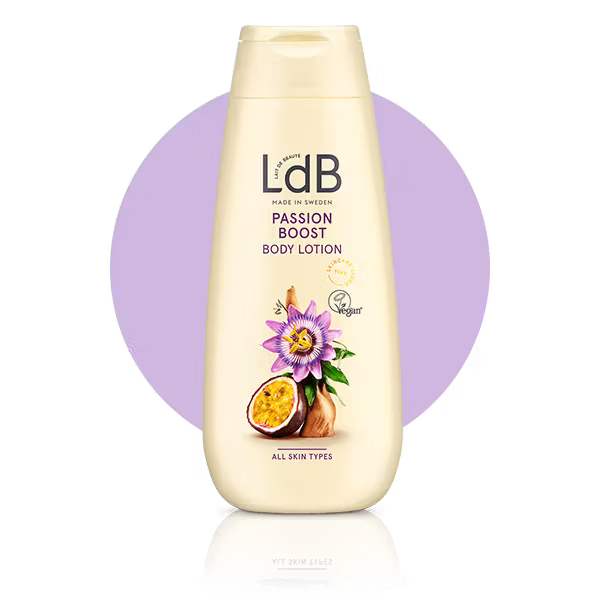 Le nouveau Lait Corps Passion Boost de LdB est entièrement vegan et certifié par la Vegan Society. Testé dermatologiquement, il convient à tous les types de peau. Tous les produits LdB sont fabriqués à Falun.