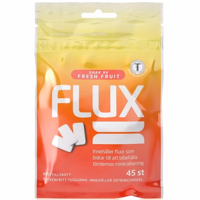 Le chewing-gum Flux au fluor, saveur fruitée, est un chewing-gum sans sucre, contenant du fluor et aux arômes de mangue, de citron et d'orange. Le fluor contribue à la minéralisation des dents. Il convient aux adultes et aux enfants à partir de 12 ans. Il peut être pris après les repas pour protéger les dents des attaques acides qui attaquent l'émail après avoir mangé ou bu. Pour un effet bénéfique, mâchez le chewing-gum pendant au moins 20 minutes. Contient des édulcorants.