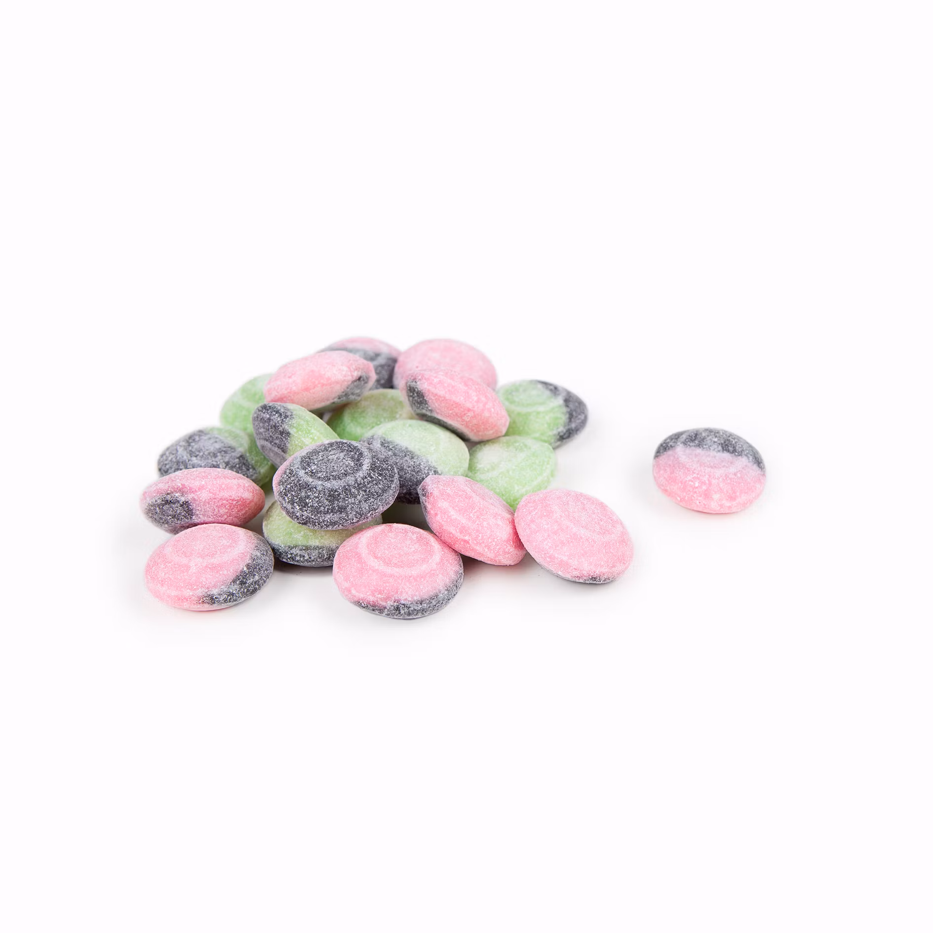 Les comètes sont des bonbons durs fourrés à la poudre. Moitié réglisse, moitié fraise ou poire.