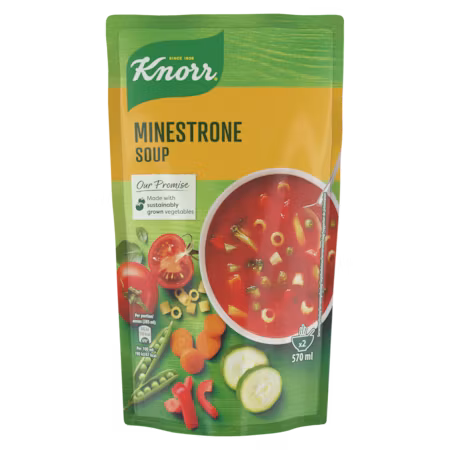 Knorr Italian Minestrone Soup è una gustosa zuppa con pasta ed erbe italiane. La zuppa è fatta con verdure coltivate in modo sostenibile. La confezione appositamente sviluppata aiuta a preservare il buon sapore. Devi solo aprirla, riscaldarla e gustarla.