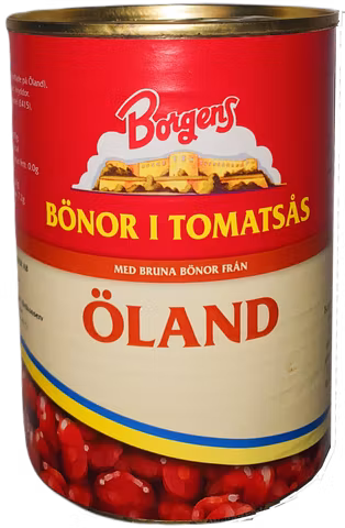Fagioli marroni (coltivati a Öland), acqua, zucchero, pomodoro, spezie, sale, addensante (E415), aceto.