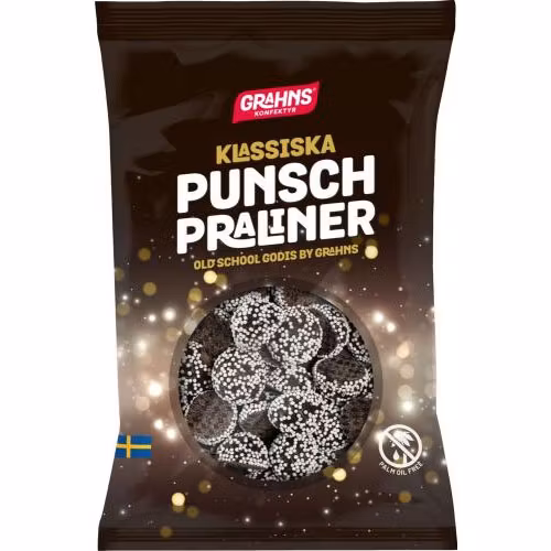 Le praline Punsch sono un classico prodotto in Svezia fin dagli anni '50. Questa deliziosa pralina ha il sapore dell'arrack e del rum, è ricoperta di gustoso cioccolato ed è guarnita con perle di zucchero. L'unico problema è che una volta iniziato a mangiarle, non si riesce più a smettere. Creano dipendenza.
