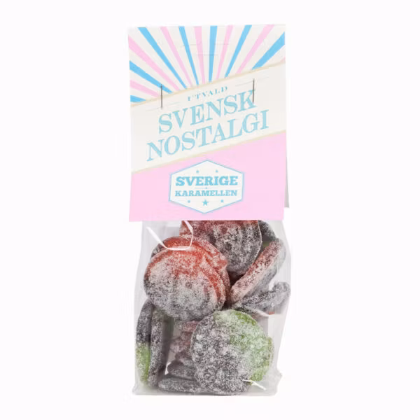 zucchero, sciroppo di glucosio/fruttosio, gelatina, salmiac, liquirizia, regolatore di acidità, acido malico (E296), coloranti (E100, E131, E120, E153).