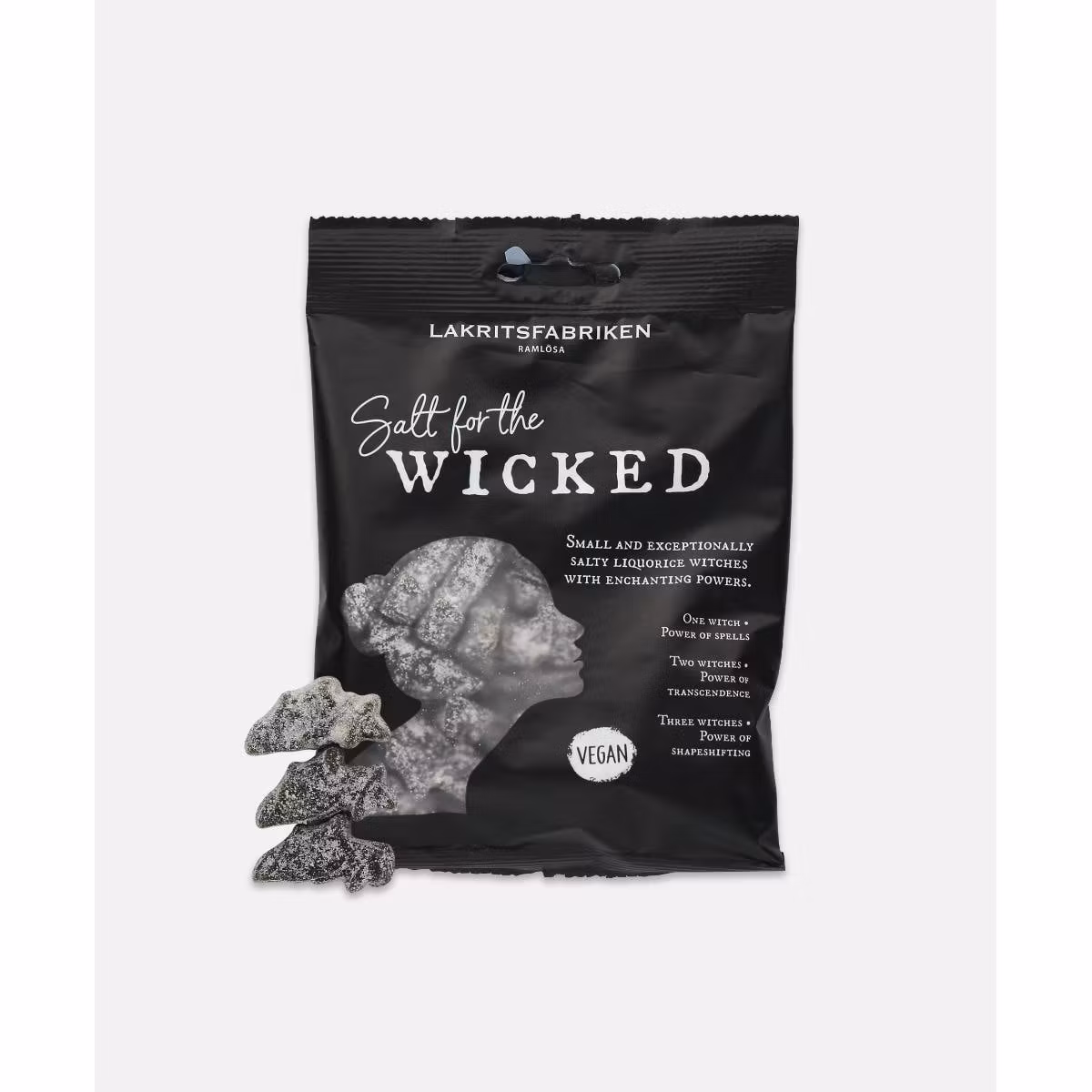 Una strega di liquirizia salata e corrosiva! Una liquirizia salata modellata immersa in un sacco di salmiak! Completamente priva di glutine e gelatina.