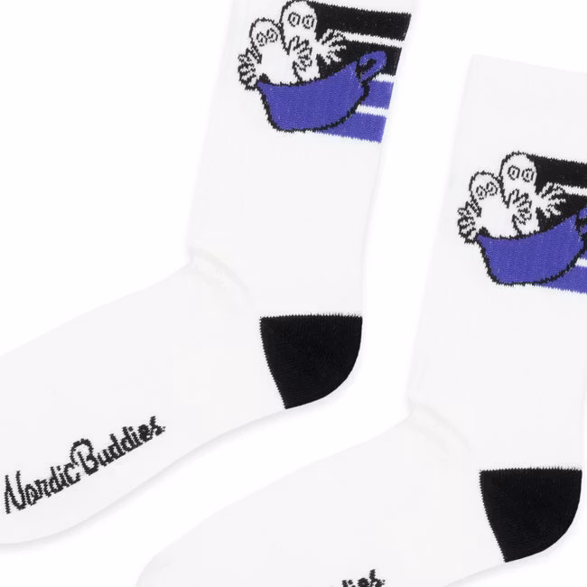 Stap in comfort en karakter met de Nordic Buddies Hattifatteners Active Crew herensokken. Deze sokken, die de mysterieuze Hattifatteners in het zonnetje zetten, geven je outfit een speelse maar stijlvolle touch. Ze hebben een actieve, ronde pasvorm en bieden extra ondersteuning en duurzaamheid voor dagelijks gebruik. De zachte, ademende stof zorgt voor langdurig comfort, of je nu in beweging bent of ontspant. Een unieke en praktische keuze voor Moomin-fans die zowel functionaliteit als plezier in hun accessoires zoeken.