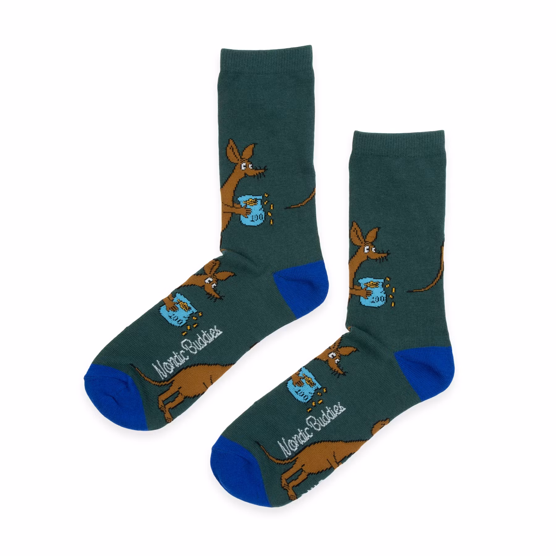 Geef je outfit een speelse twist met de Nordic Buddies Sniff Business herensokken in het groen. Met de schattige Sniff in een leuk, zakelijk design voegen deze sokken zowel humor als karakter toe aan je dagelijkse stijl. Gemaakt van zacht en ademend materiaal, zorgen ze voor langdurig comfort en een comfortabele pasvorm, de hele dag door. De frisse groene kleur geeft ze een levendige, opvallende look die gemakkelijk te combineren is met casual of casual kleding. Perfect voor Moomin-fans die houden van unieke accessoires met een eigen karakter.