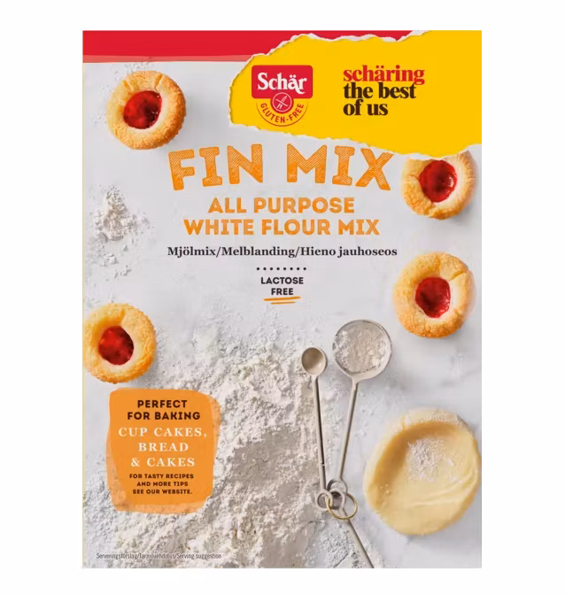 Bak glutenvrije, sappige muffins of een heerlijk licht brood. Onze populaire Fin Mix is een lichte bloemmix die je op dezelfde manier kunt gebruiken als tarwebloem bij traditioneel bakken en koken. Fin Mix is ook lactosevrij en zonder toegevoegd tarwezetmeel. Het is perfect voor muffins, brood, zachte cakes en koekjes. Deze veelzijdige favoriet kan ook gebruikt worden om te koken, zowel voor het paneren van kip als voor het maken van een heerlijke bechamelsaus.