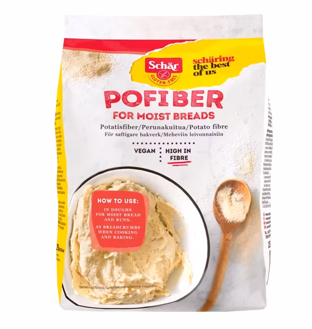 Bak sappiger brood en kook gerechten met glutenvrij paneermeel. Pofiber, gemaakt van Zweedse aardappelen, is een volledig natuurlijk product zonder toevoegingen. Pofiber is een fijn verdeeld vezelmeel dat effectief grote hoeveelheden vocht bindt. Het kan worden gebruikt bij glutenvrij bakken voor steviger deeg en sappiger brood en in gerechten zoals paneermeel, bijvoorbeeld bij het paneren.