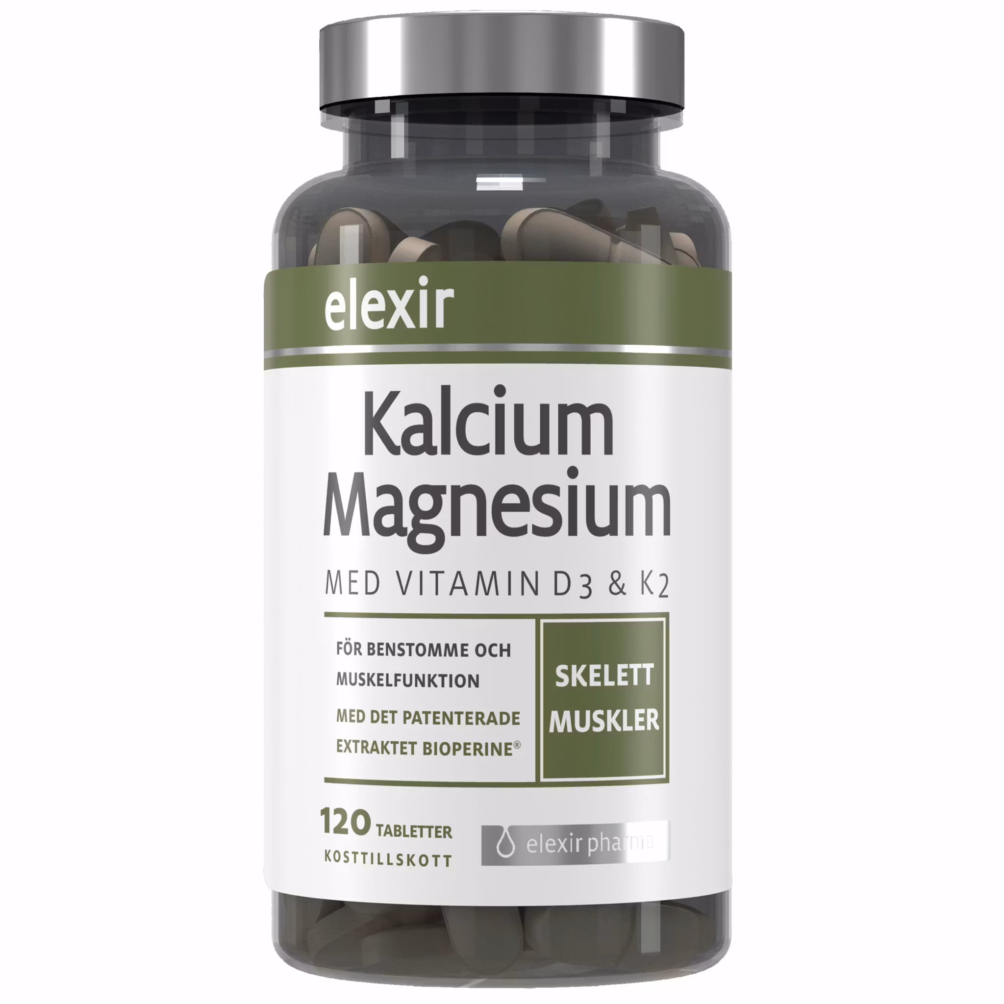 Elixir Calcium en Magnesium bevat een uitgekiende samenstelling van calcium, magnesium, vitamine D3 en vitamine K2. De mineralen calcium en magnesium werken samen in het lichaam. Calcium draagt bij aan de opbouw van de botstructuur en aan een normale spierfunctie. Magnesium draagt onder andere bij aan een normale spierfunctie en aan het verminderen van vermoeidheid en uitputting. Bevat ook kurkuma-extract en Bioperine® voor een verhoogde biologische opname.