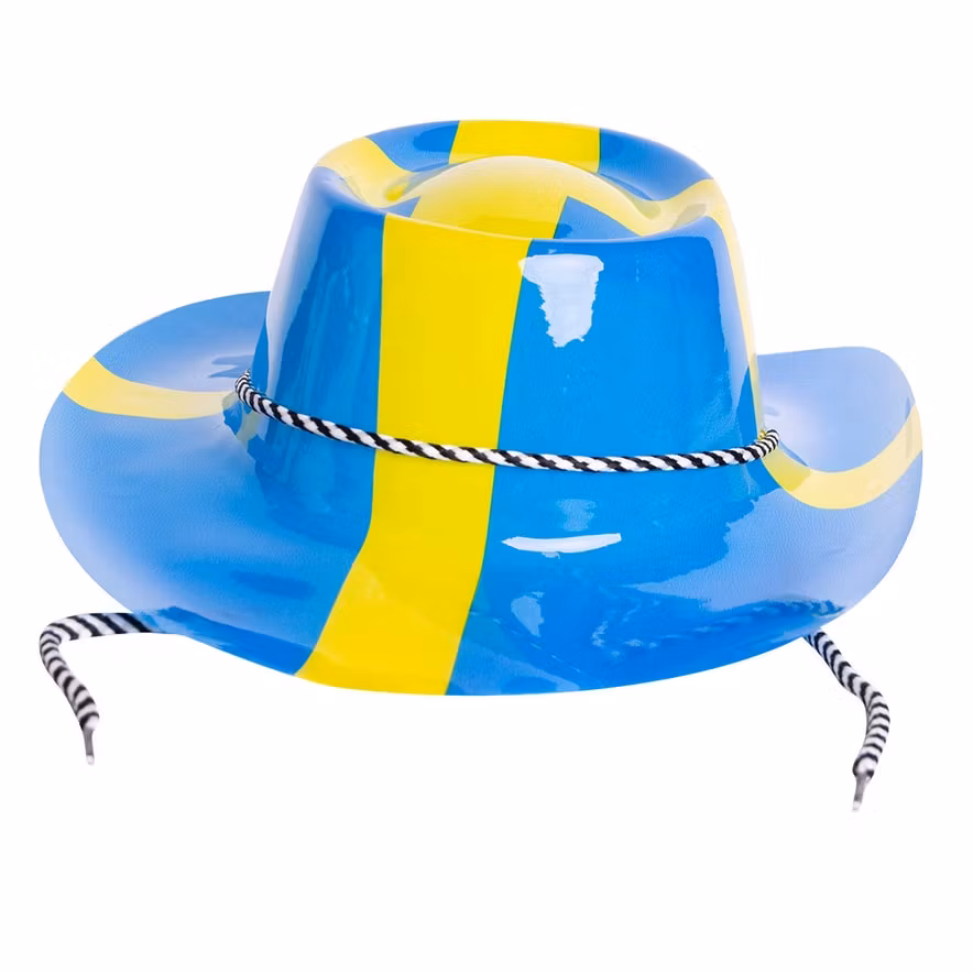 Deze cowboy-geïnspireerde hoed met de Zweedse blauw/gele kleuren is uitstekend te gebruiken bij sportevenementen wanneer u de overwinning van het nationale team wilt vieren en tijdens de studenten- en midzomertijd. Laat de kleuren van de zomer op u schijnen.