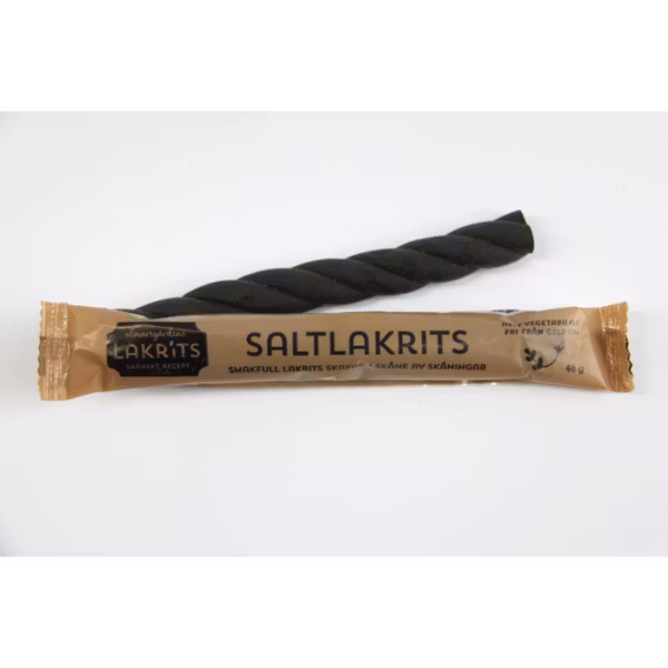 Our own good salty licorice with good amount of salt. This is a salted licorice for those of you who like really tough salted licorice. This is not the same salt licorice as in our bag. Each licorice stick weighs approximately 46 grams.