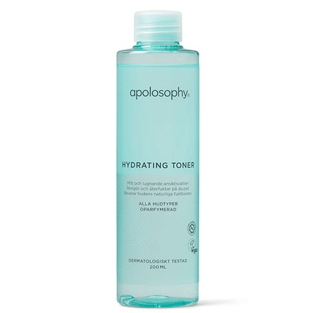 Apolosophy Hydrating Toner is a mild and soothing facial toner that cleanses deeply. Perfect as the last, final step in your facial cleansing routine, to remove the last remnants of dirt and make-up. Enriched with glycerin and PCA that moisturizes while giving the skin a fresh and refreshed feeling. Thanks to these substances, which occur naturally in the skin, the moisture balance can be preserved. Contains well-selected moisturizers and lipids of the highest quality, dermatologically tested on people with sensitive skin. Recommended by Asthma Allergy Nordic.