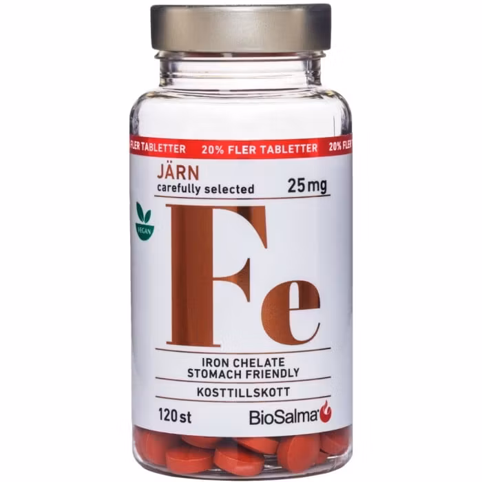 BioSalma iron bisglycinate (Ferrochel) is a vegan food supplement where the iron is bound to the amino acid glycine. This allows the iron to pass through the stomach gently without causing the discomfort that other iron supplements can cause. The absorption of iron takes place in the small intestine.