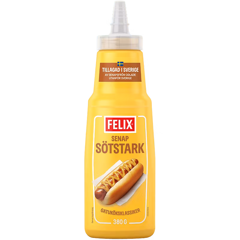 Felix Mustard Sweet & Spicy has a round, floral and sweet mustard flavor with a sting. Perfect for your sausage or hamburger, but also to give a little extra flavor to stews and sauces. The mustard is made in Sweden! Comes in a bottle that is convenient and easy to use. Drizzle and enjoy!