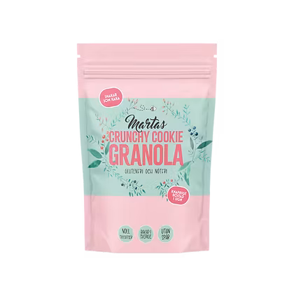 Forget crumbly and tired granola, try Marta's Crunchy Cookie granola and discover the difference! This granola tastes like cookie and is just as good with coffee as it is sprinkled over yogurt.