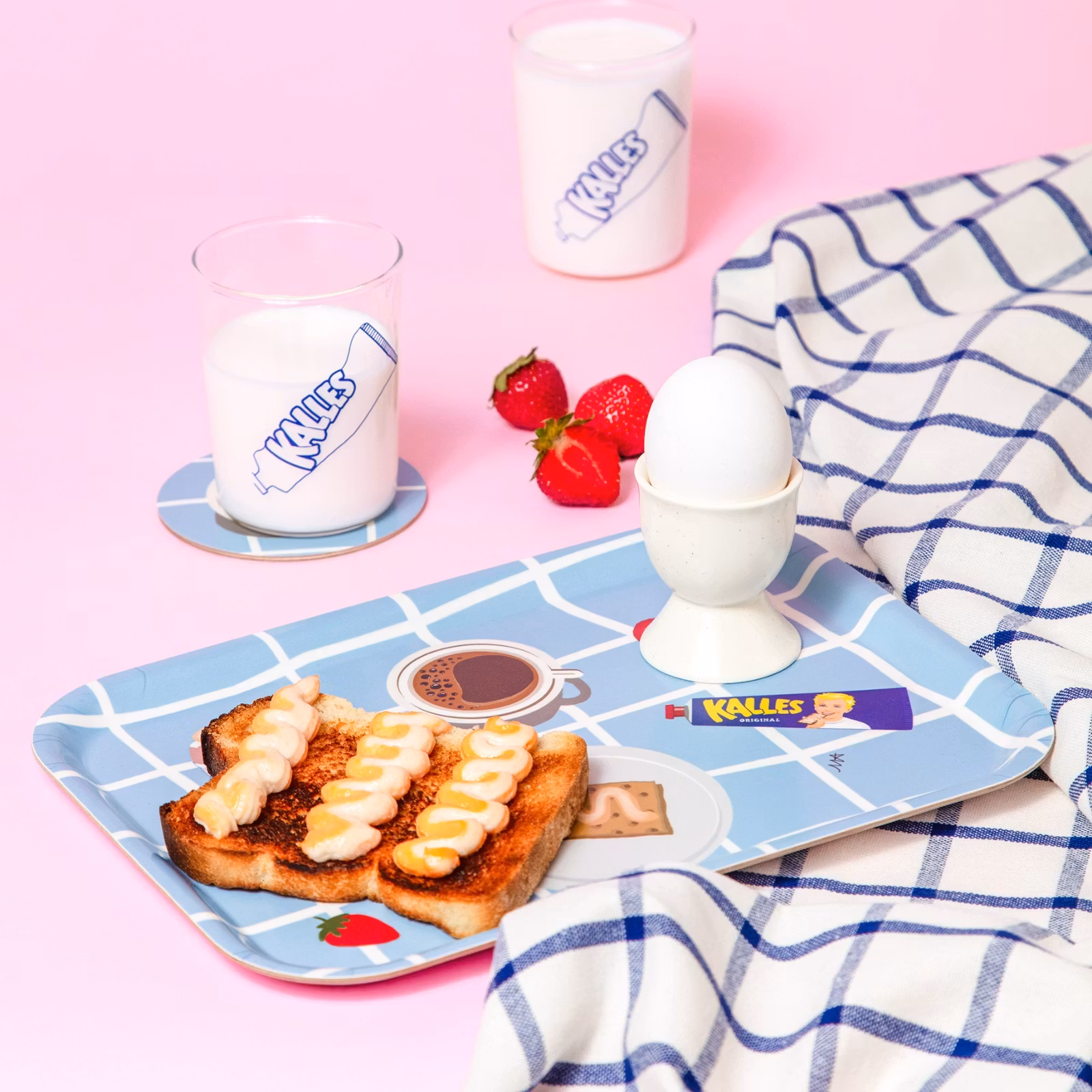 Playful and practical breakfast tray that was created in connection with Kalle's 70th anniversary and celebrates the popular caviar's obvious place on the breakfast table through the ages. The motif represents Kalle's own birthday breakfast and invites you to a homely atmosphere!
