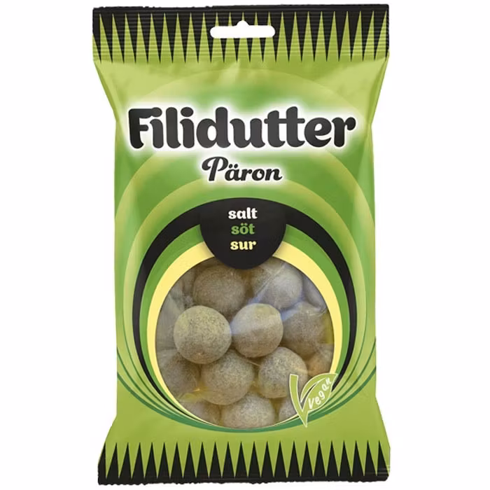 Filidutter Pear Insanely delicious round caramel with a fantastic taste combination of pear and salted licorice. The caramel is covered in salted licorice powder and has a lovely tart filling in the middle. A caramel that takes you on an incredible taste journey.