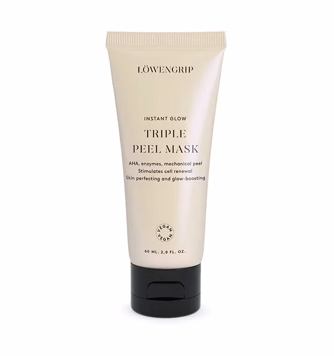 Enjoy fresh and clear skin with maximum glow with the new triple-acting facial peeling that exfoliates with AHA, pineapple enzymes and fine granules of cellulose. Triple Peel Mask effectively eliminates dead skin cells, minimizes the visability of the pores and stimulates cell renewal. Improves the skin’s elasticity and volume. Reduces oiliness without de-hydrating. Polishes the skin’s structure, smoothes fine lines and instantly brightens and even out the skin tone. Vitamin C adds glow and has a smoothing effect. Enriched with moisture-bindning Glycerin and radiance-boosting Niacinamide which also smoothes the skin and strengthens the skin barrier. Revitalizes clogged and lifeless skin longing for new energy. The result is clear and fresh skin with maximum glow. Suits all skin types, even sensitive skin. With a refreshing scent of green leaves and banana. Vegan.