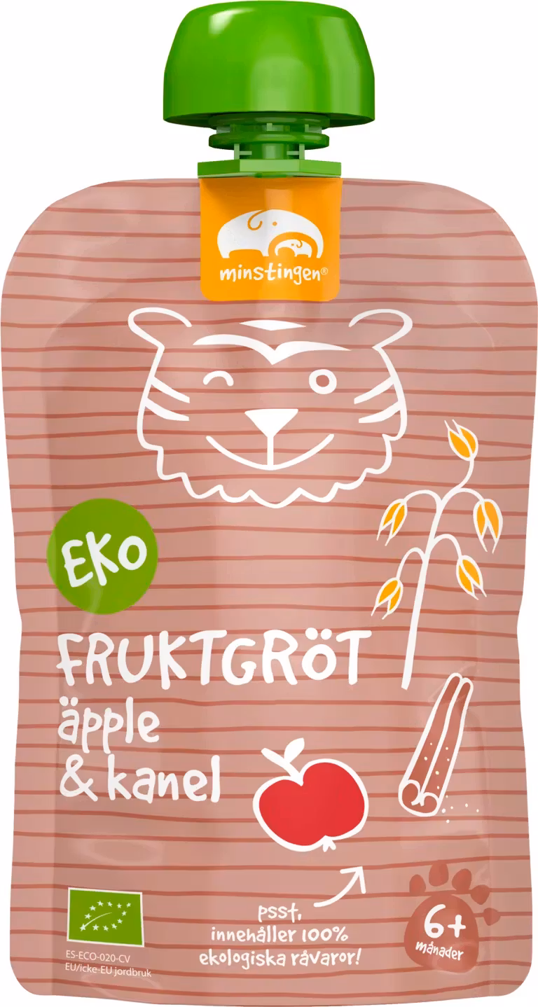 Fruit porridge in a squeeze bag with apple and cinnamon flavor. Contains 100% organic ingredients. Perfect snack when your little one needs energy. Store at room temperature. Opened package stored in the refrigerator +8°C, lasts for a maximum of one day.
